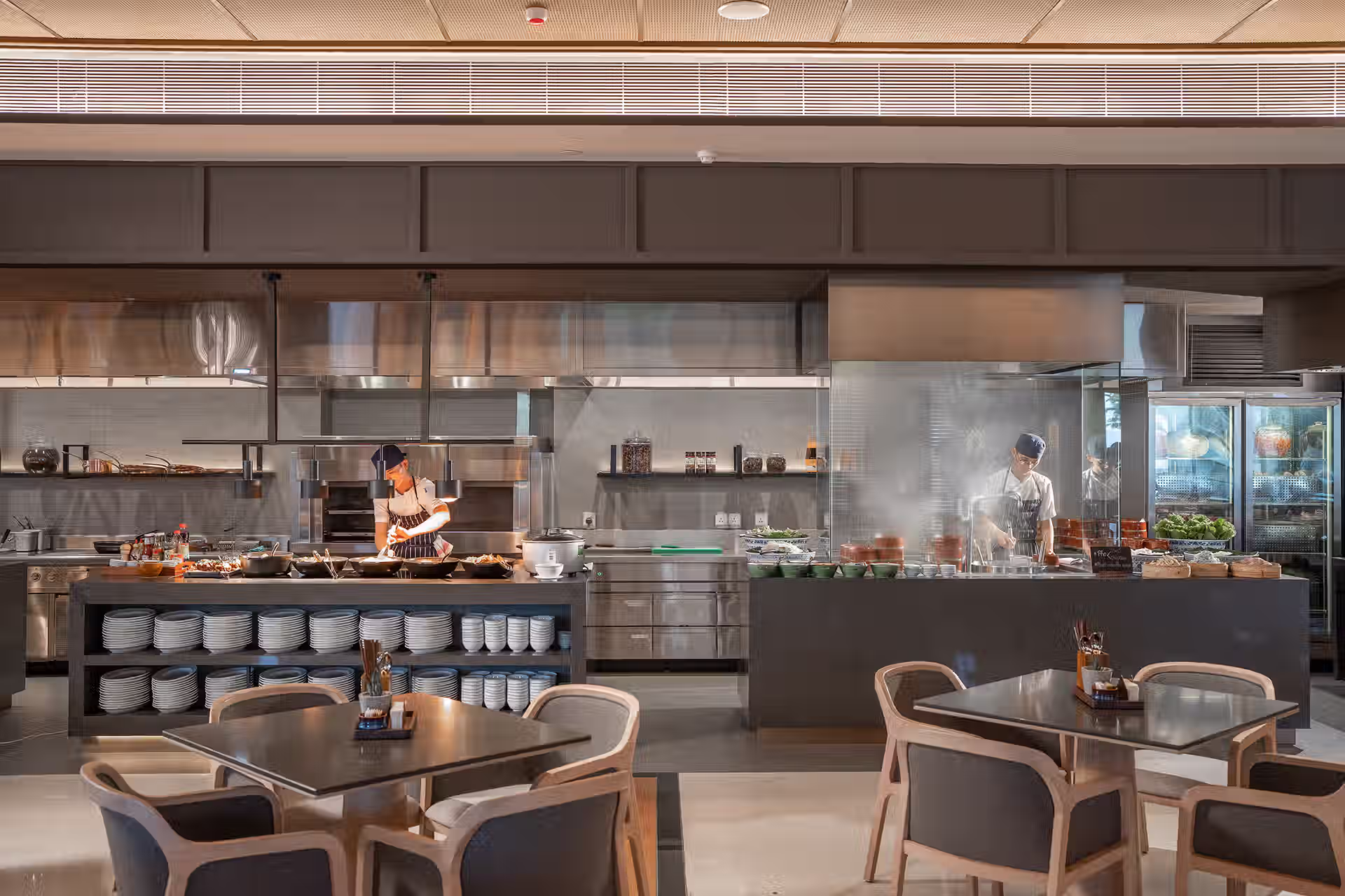 This energetic morning venue offers warm wood-paneled indoor dining with show kitchen views or open-air outdoor seating. Mediterranean cuisine incorporates Vietnam's bounty throughout the day.
