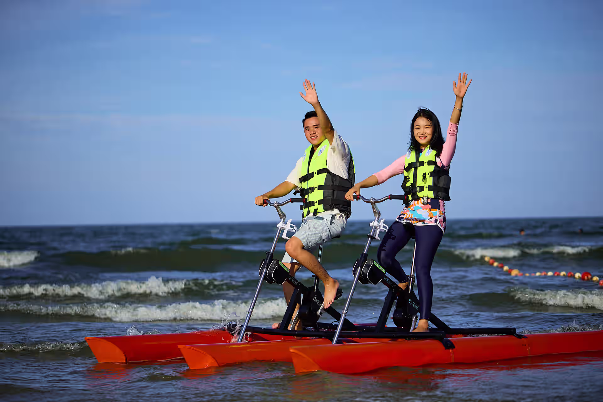 Swap the streets for the sea pedal, splash, and laugh your way across the water on these floating bikes built for pure fun.