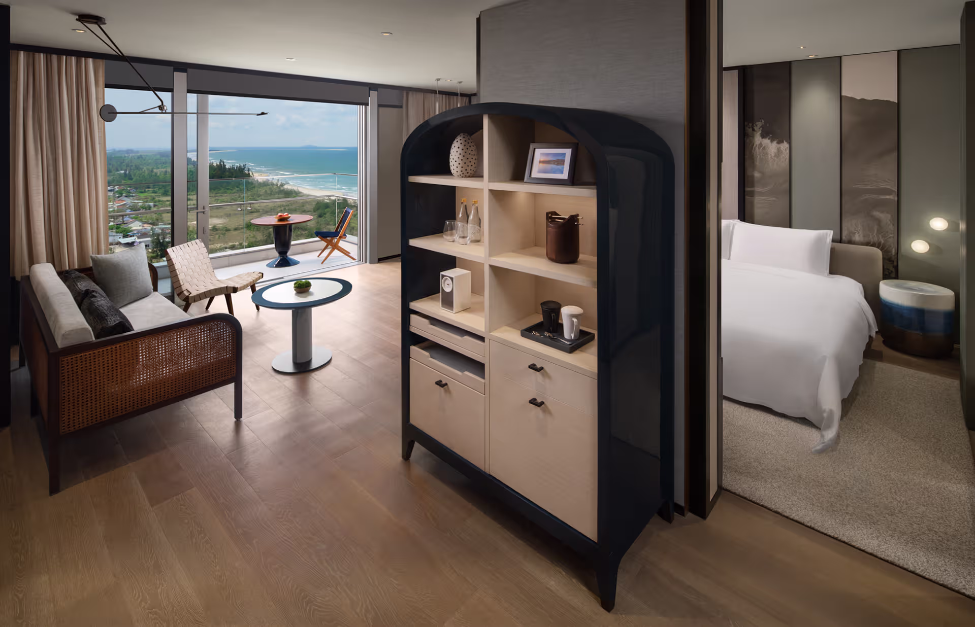 Refined sanctuary with private balcony sunset moments, spacious sitting area with sumptuous sofa, smart TV entertainment, and unparalleled pampering.