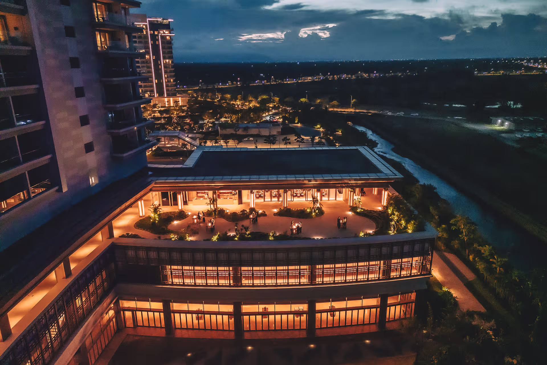 This upscale venue blends contemporary sophistication with natural serenity across 430 sqm of indoor and rooftop spaces, where ocean horizons and tropical gardens inspire unforgettable moments.