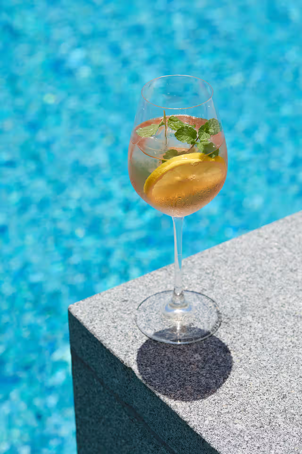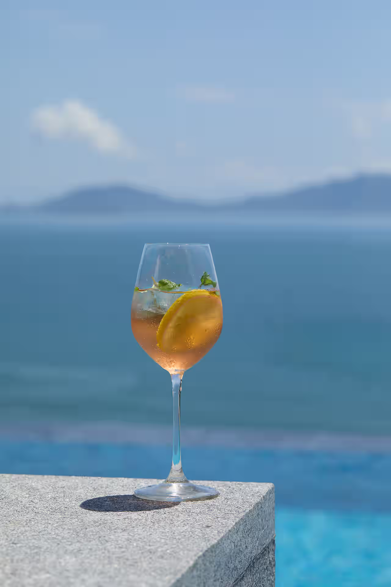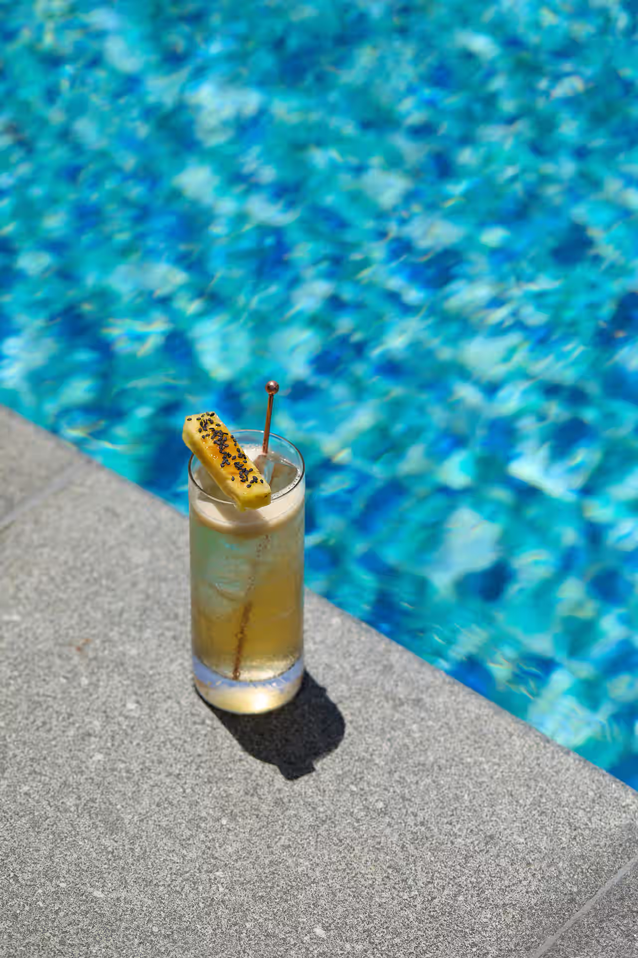 这片池畔天堂,从活力蛋白冰沙到加入新鲜水果与香草的手工琴汤力,应有尽有。倚坐在舒适的巢形椅中,或悠然划桨于碧波之间,在无边海景中惬意品饮。